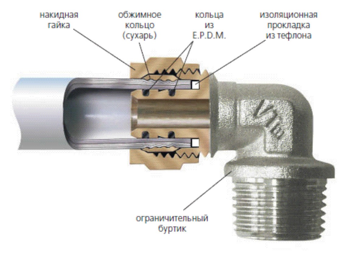 - обжимное соединение в случае протечки легко поддается ремонту: достаточно подтянуть накидную гайку.